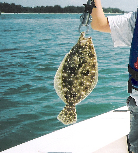 | A typical Gulf Flounder in full display. Flounder frequent many of the areas we typically fish in the passes and inlets. |
